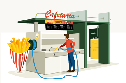 Dankzij het bulksysteem wordt olie rechtstreeks vanuit een buffertank in de friteuse gepompt. Zwaar tillen, morsen en onnodige fysieke belasting worden hiermee voorkomen.