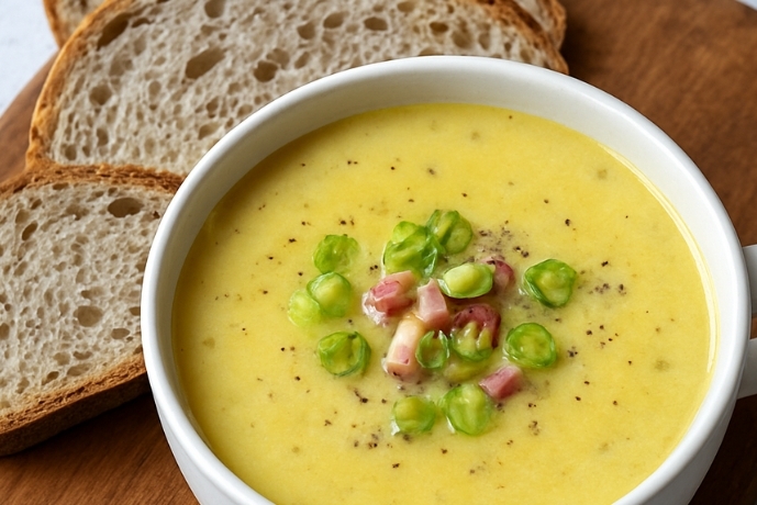 Wisselende dagsoep, met ambachtelijk Dubbel Drents brood met aïoli, tomatensalsa en kruidenboter