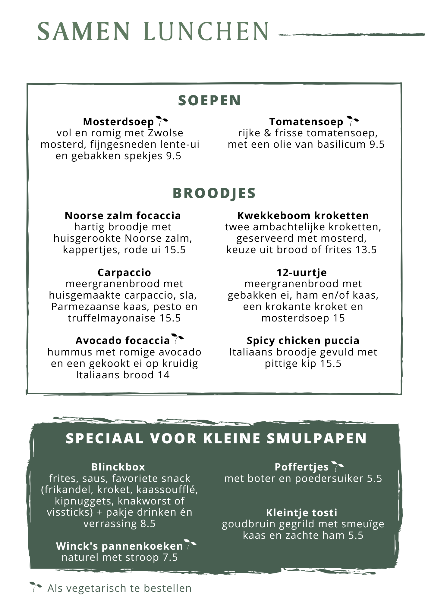 Of het nu gaat om een familieuitje, teamdag of vriendenweekend, wij maken van jullie lunch een ontspannen en smakelijke ervaring.